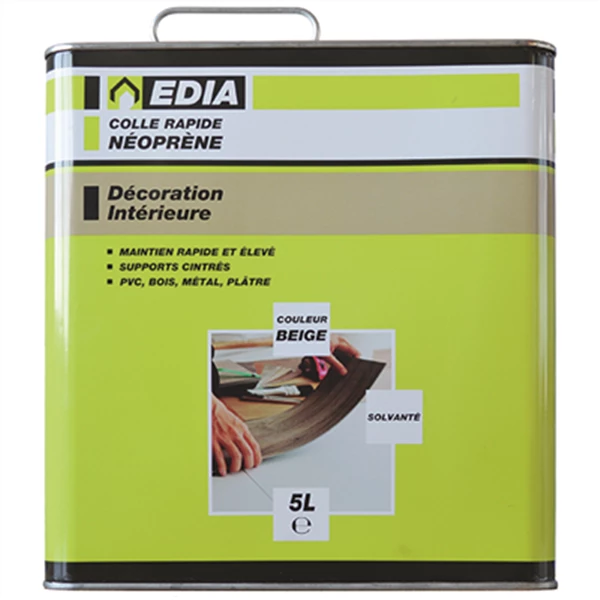 | Conditionnement | 1 bidon de 5 litres de colle néoprène Edia |