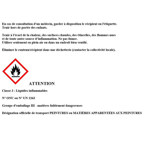 Désignation officielle de transport PEINTURES ou MATIÈRES APPARENTÉES AUX PEINTURES