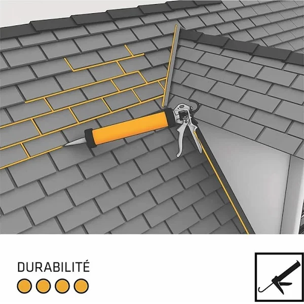 TrÚs bon mastic pour la fixation des tuiles. Il est souple et résiste bien aux intempéries. Je recommande.