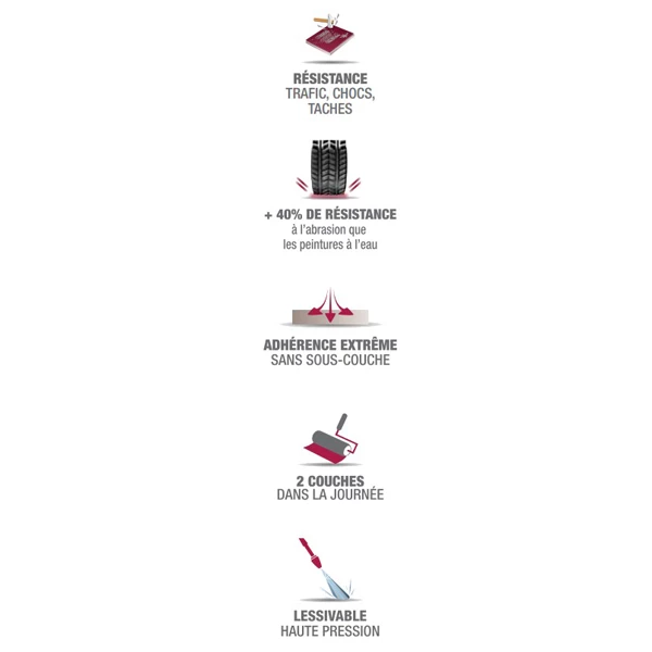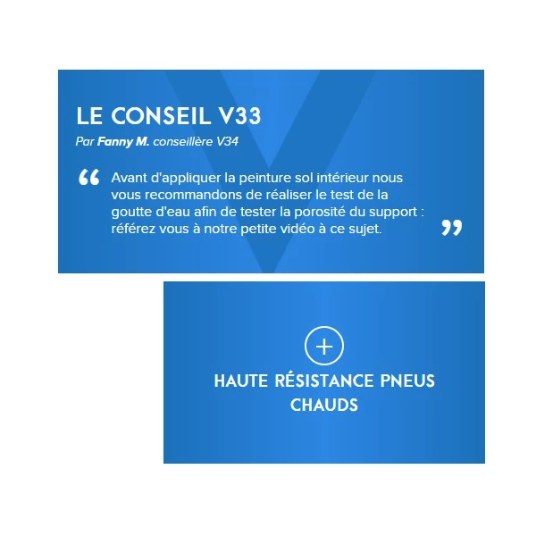 Avec la peinture V33 « Trafic extrĂȘme » pour sols de garage et sous-sols, vous obtenez un niveau de protection maximal contre les chocs, tĂąches et une rĂ©sistance Ă©levĂ©e au passage de pneus chauds.
