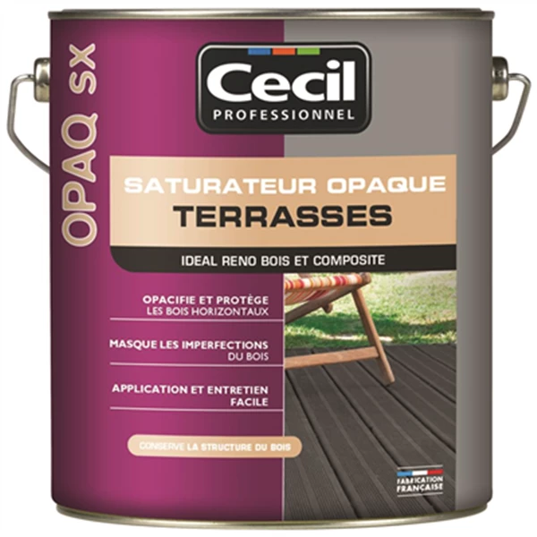 Préservez les terrasses, escaliers, caillebotis et balustrades en bois avec le saturateur opaque OPAQ SX, de la marque spécialiste Cecil Professionnel.